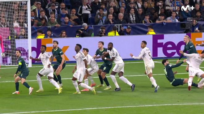 然而,就在此次判罚后不久,场上出现了另一幕类似场景:曼城后卫格瓦迪奥尔在己方禁区内与皇马球员劳尔-阿森西奥发生了身体接触。皇马球员认为此动作与之前导致点球的吕迪格动作相似,因此集体向裁判申诉,但主裁判蒂尔潘未得到VAR介入审查此事件的提示,也未做出判罚决定。